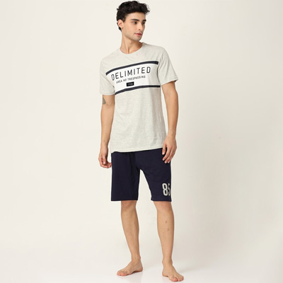 Men White & Orange Geometric Printed Pure Cotton Night suit