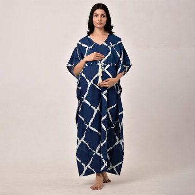 Printed Pure Cotton Maternity & Nursing Maxi Nightdress