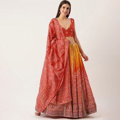 "Multicoloured solid lehenga choli with dupatta, Multicoloured solid unstitched blouse, has a v-neck, sleeveless, multicoloured solid semi-stitched lehenga, has drawstring closure, flared hem Multicoloured printed dupatta, solid border Size & Fit Dupatta Length :- 2.4 meter,Lehenga Length :- 41 inch,Blouse Length :- Unstitch 1 meter Material & Care ,Dry Clean only"
