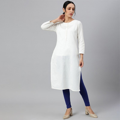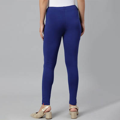 "Blue solid regular-fit ankle-length leggings in blue, has an elasticated waistband and slip-on closure Size & Fit Regular-fit The model (height 5'8"") Material & Care 95% Cotton 5% Lycra Machine-wash"
