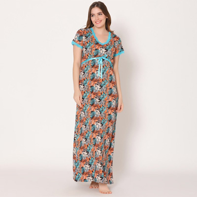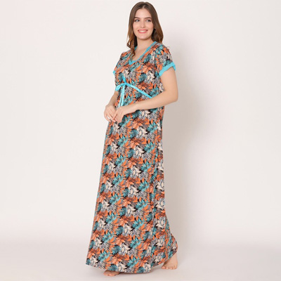 "This nightdress is crafted to redefine comfort. Its ultra-feminine look and feel is sure to appeal your unique taste. Features V-neck Short sleeves Maxi Size & Fit The model (height 5'8) is wearing a size XXL Material & Care Cotton Blend Machine Wash"