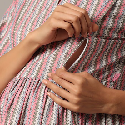 "Striped printed Anarkali shape Regular style Round neck, three-quarter puffed sleeves 1 pockets Above knee length with flared hem Pure cotton machine weave fabric Trousers design: Printed Trousers Drawstring closure Size & Fit The model (height 5'8) is wearing a size S Material & Care Kurta material: 100% cotton Trouser material: 100% cotton Machine wash"