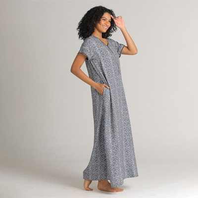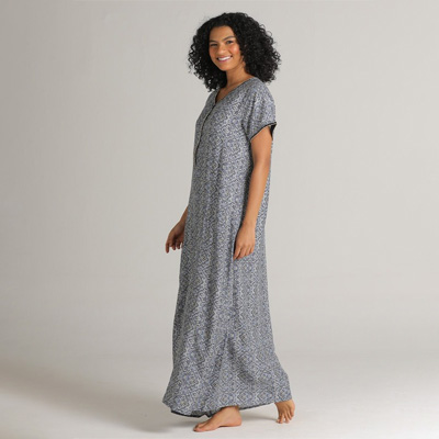 "Gift yourself a relaxing sleep by slipping into this super-soft nightdress. Whether you wear it to bed or lounge around in it at home, this nightwear will provide you maximised comfort. Features V-neck Short sleeves Maxi Size & Fit The model (height 5'8) is wearing a size S Material & Care Viscose rayon Machine wash"