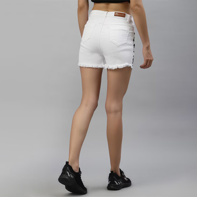 "White abstract printed high-rise outdoor hot pants, has 4 pockets, button closure
